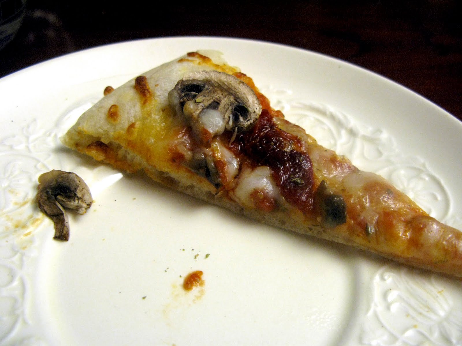 The end result of much fighting with the dough was this: a glorious sourdough pizza. We were going to make it into bread and have it with fried eggs for dinner, but it didn't rise nearly enough. Stubborn little sonuva. But this came out wonderfully.